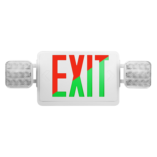 The ECL1-Select LED Emergency Exit Sign Combo features field-selectable red and green lettering. With included templates for both colors, simply install the slide color you need and flip the LED switch inside to match. The ECL1 is offered in white and black and features a universal mounting bracket for simple installation anywhere, and 90-minute emergency operation with integrated test button. This series is available in both a standard and remote-capable option to use with Remote Heads (2 max), available separately. The ECL1-Select is the ideal low-energy choice for multifamily, commercial, and retail settings.