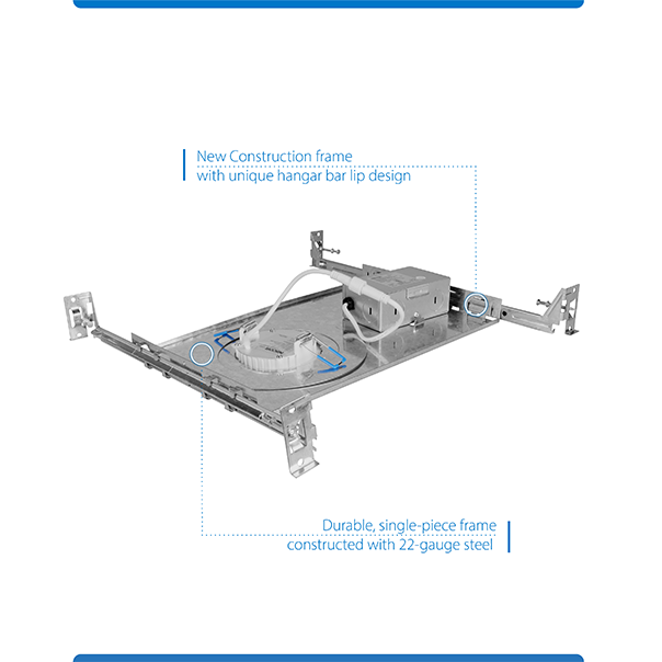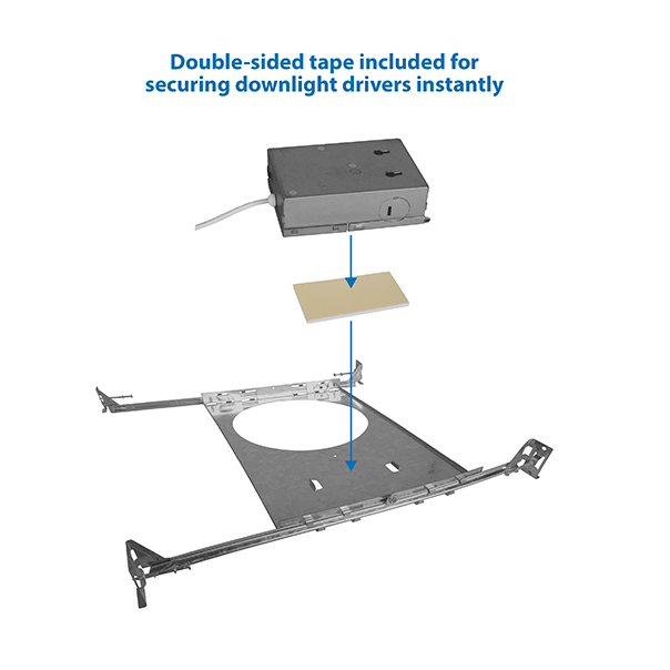 The Multiframe can be used with many of NICOR’s 3”, 4” and 6” LED downlights with remote drivers. Providing a mounting location as well as a wiring location indicator, the Multiframe can simplify the installation of downlights that don’t require a housing.